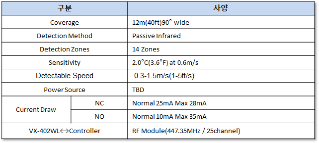 무선 실외용 열선 감지기 (VX-402WL:Under Development)